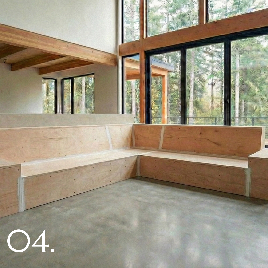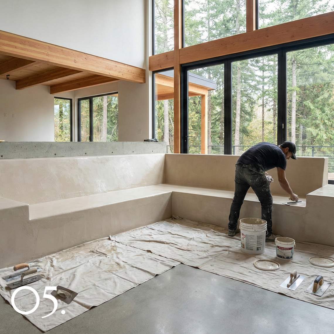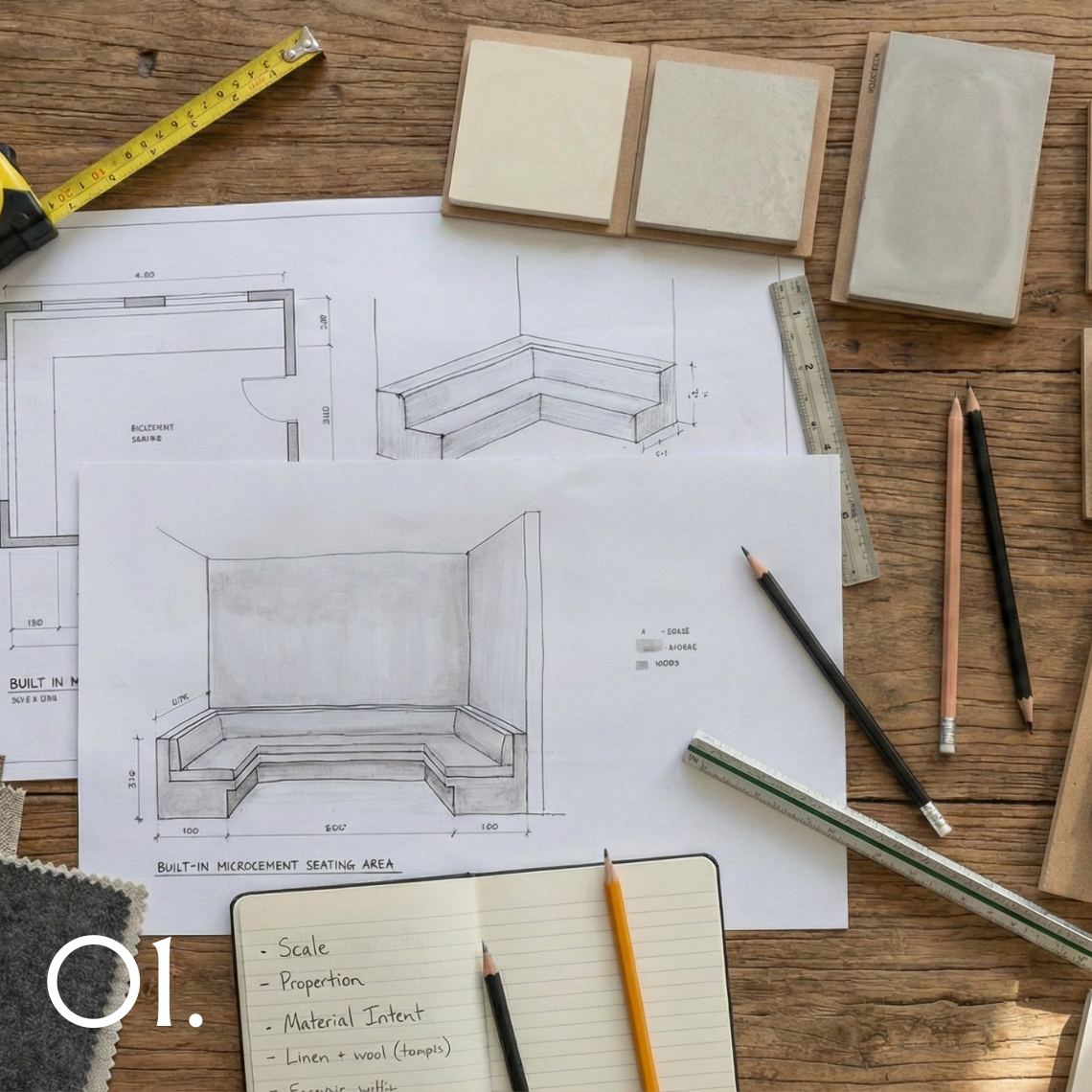 Each built-in begins with understanding how the element shapes the space and supports continuous microcement surfaces. Scale, proportion, use, and material intent are established before any fabrication begins.