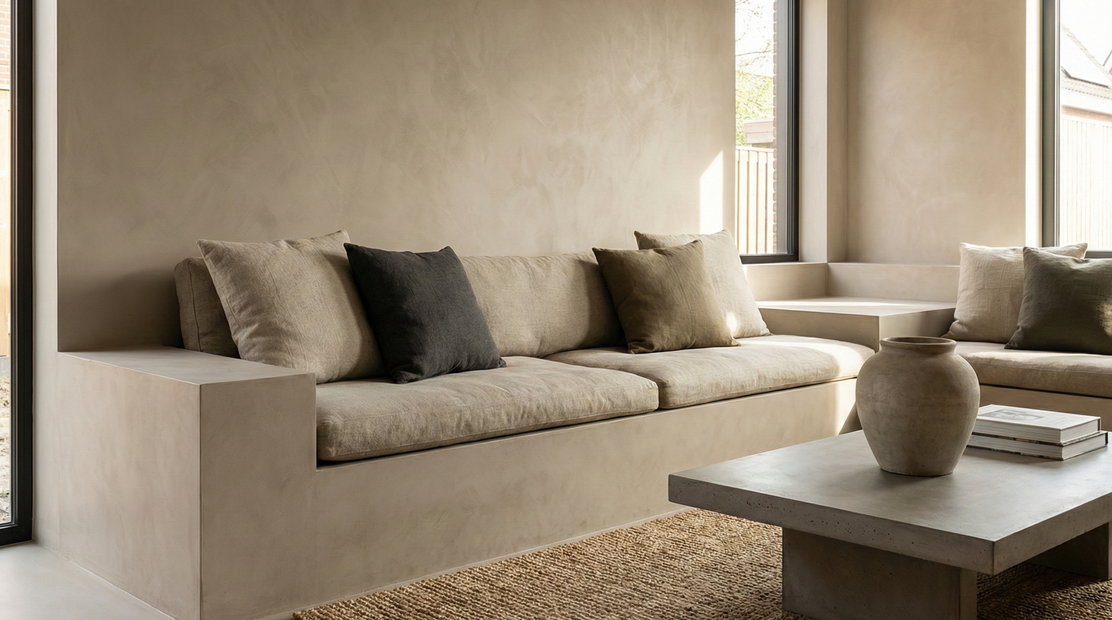 No. Skim Co built-ins are custom, architectural elements designed and engineered to support continuous microcement finishes. They are formed as part of the architecture, not installed as off-the-shelf cabinetry.