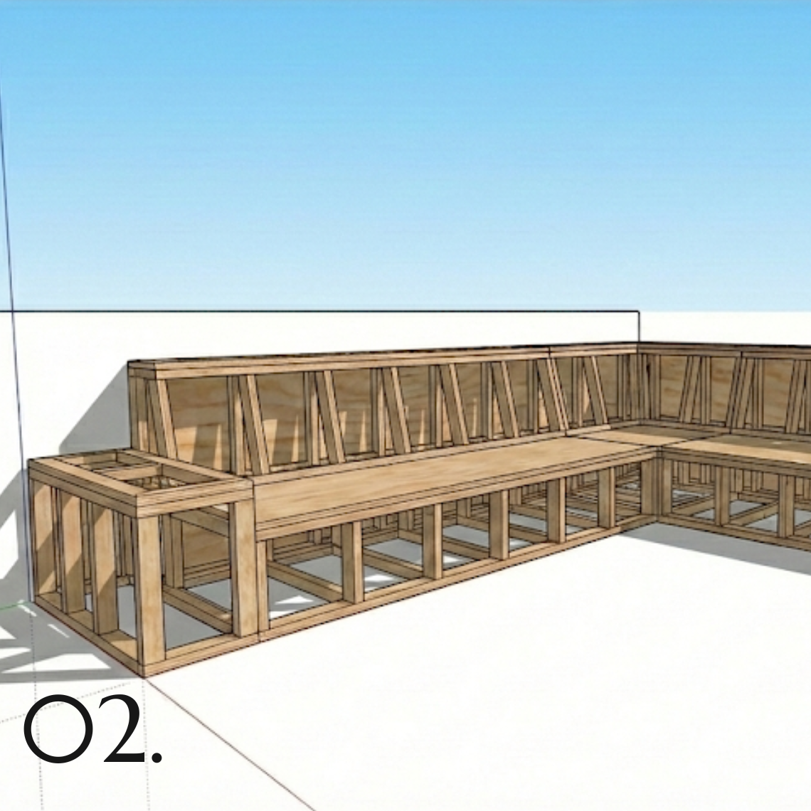 Built-ins are digitally modeled to resolve dimensions, junctions, edge conditions, and surface transitions. This step allows form, structure, and finish to be coordinated before construction.