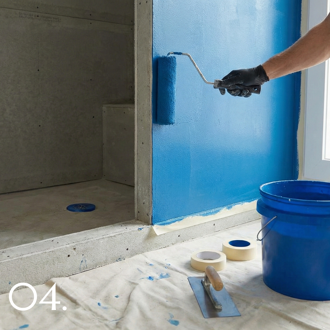 In wet rooms and showers, a dedicated waterproofing system is installed and integrated with drains, penetrations, and transitions. Microcement is applied only after waterproofing is complete and verified.