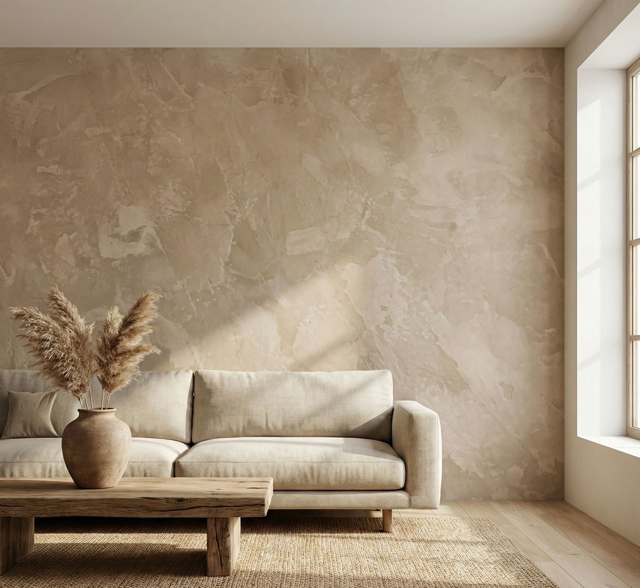 Roman Clay works well on interior feature walls, living rooms, bedrooms, hallways, and other residential spaces where a calm, textured wall finish is desired.